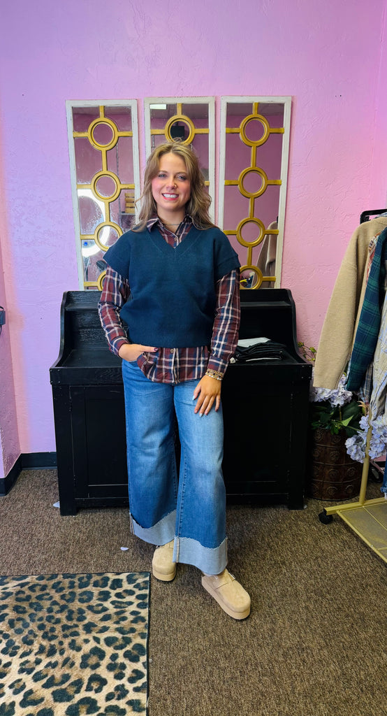 Blu Pepper Plaid Button Down Pocket