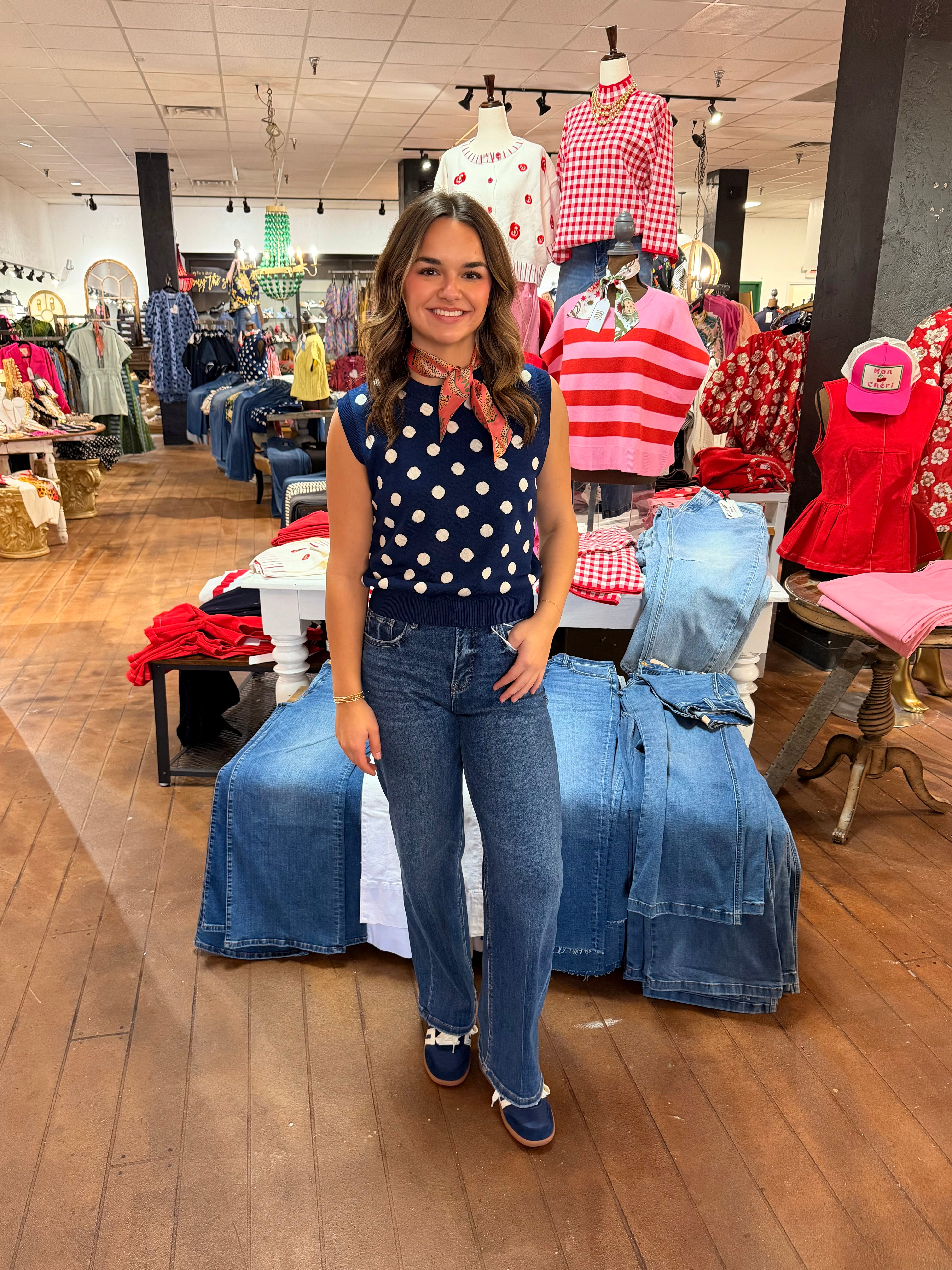 THML - Sleeveless Polka Dot Knitted Top