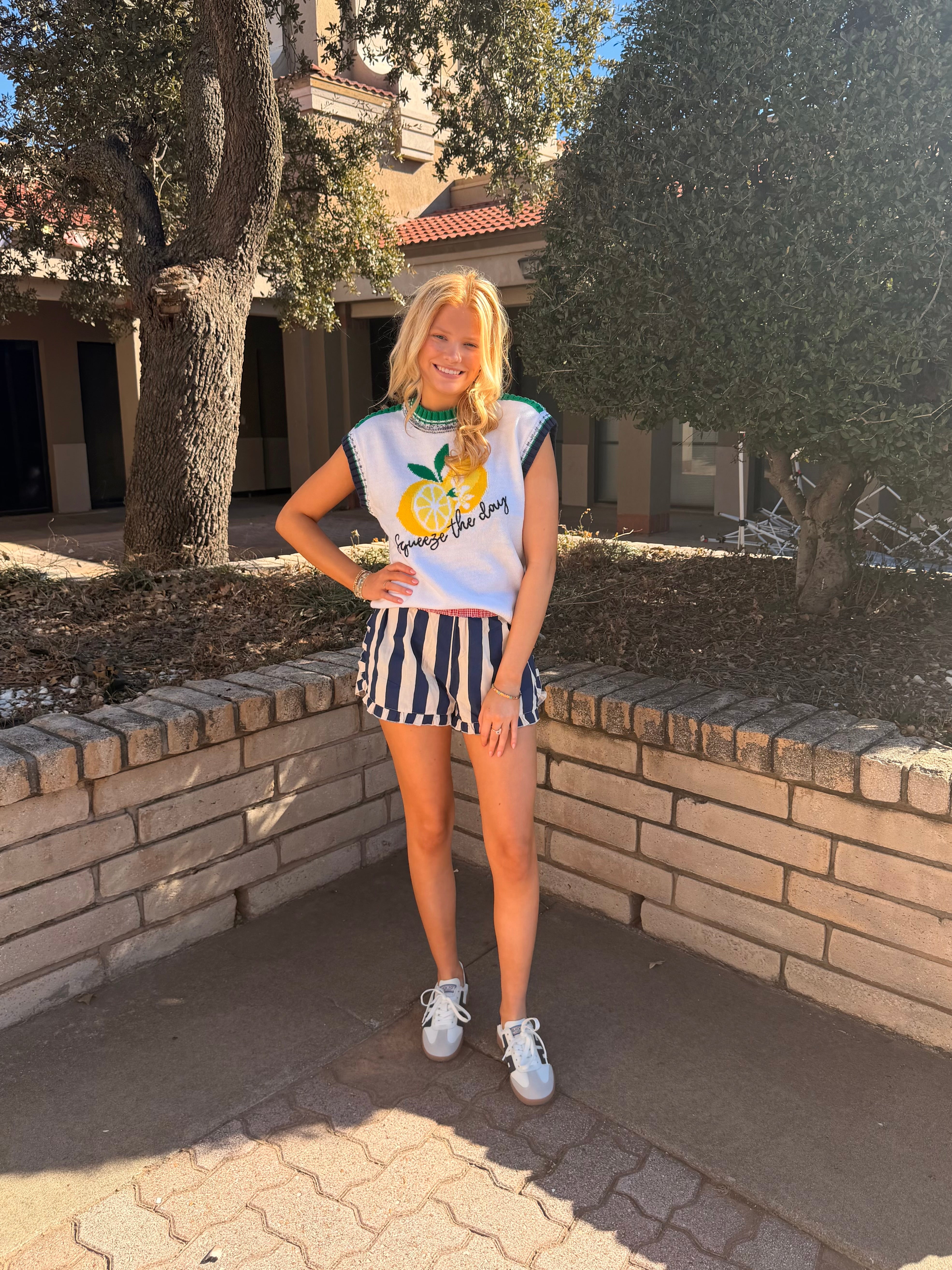 Skies Are Blue, Lemon Squeeze The Day Graphic Sweater-Vest.