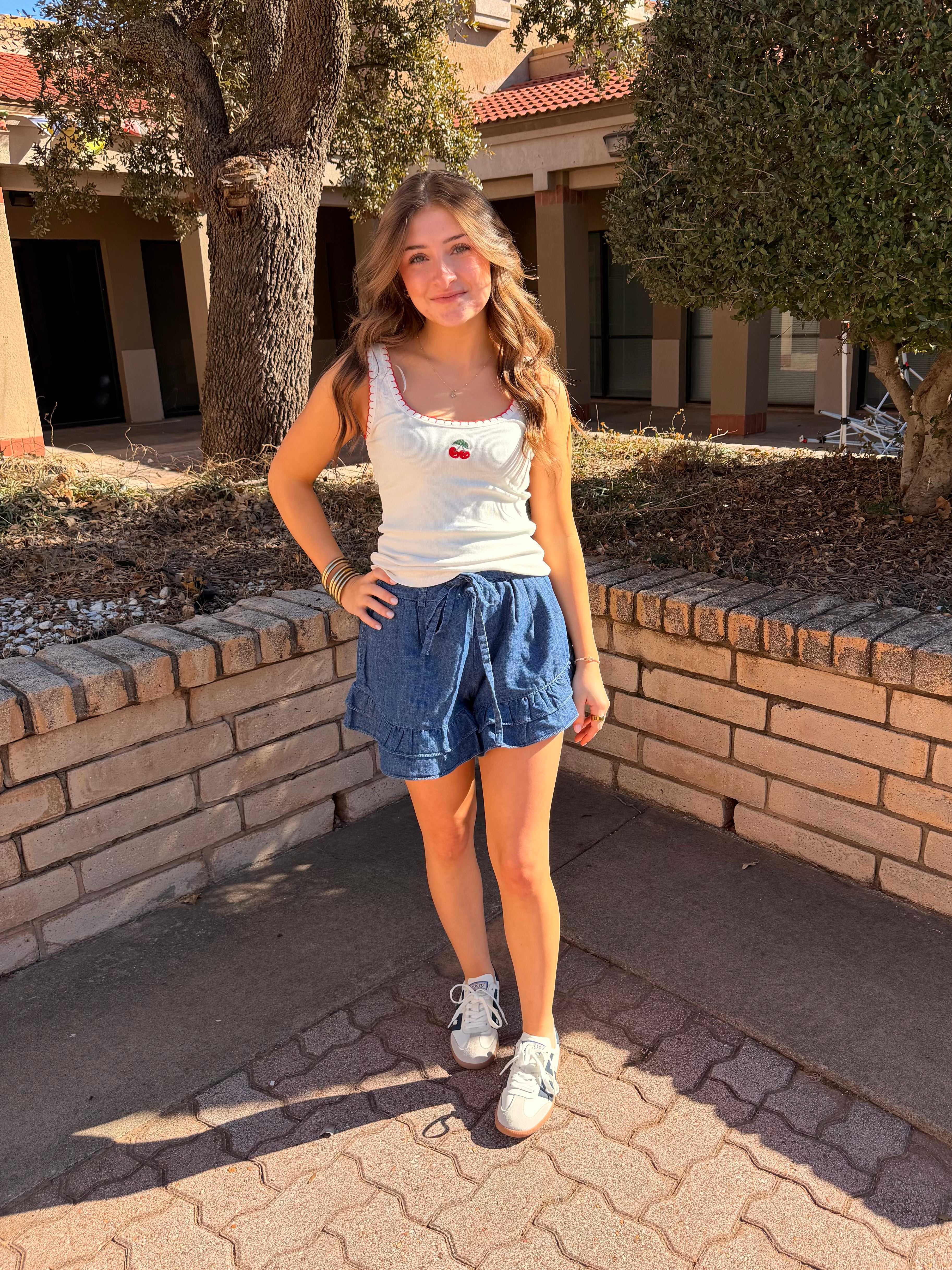 Denim Ruffle Tiered Shorts